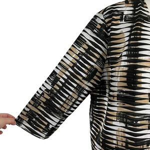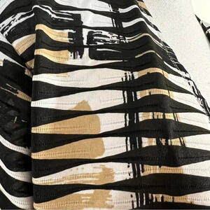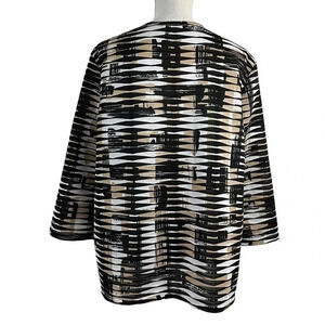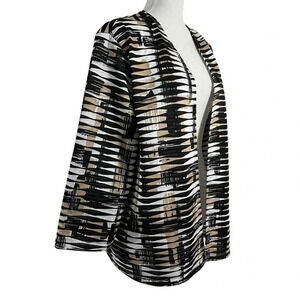 Shrug Cardigan Sweater Striped Tribal Black White Tan Neutral 3/4 Sleeve Stretch