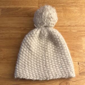 One of the original STIK hats! Super warm and fuzzy. Runs smaller than other styles. Pre-loved condition with some matting of pom pom as pictured but no tears or pulls. Priced to sell. Lots of life left in this beautifully hand knit hat!