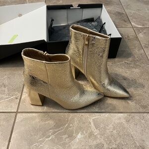 - A timeless classic, the Shu Shop Gold Veronica Boots brings holiday cheer with its radiant foiled gold pointed toe and luxurious design. Make a stylish statement with these exclusive boots designed to capture the essence of the season with a sophisticated and tasteful aesthetic. Versatile enough to wear with cropped jeans to midi skirts. Dress these beauties up or down however you please!