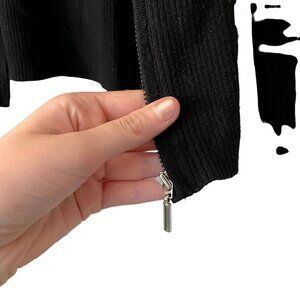 A classy black knit sweater with a full zip style. Labeled a women's size XL.
