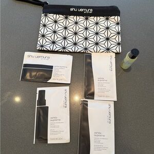 Shu Uemura Cosmetic Case w/ Essence Absolue Hair Oil and Ashita Supreme samples