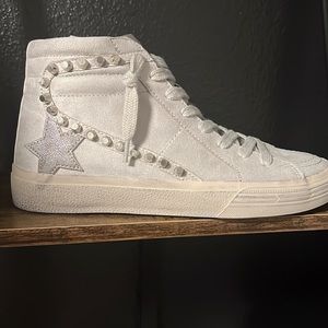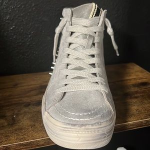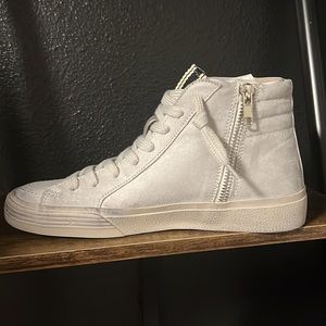 High top sneakers with functional side zipper crafted from faux leather. Wear yours with everything from jeans to dresses.