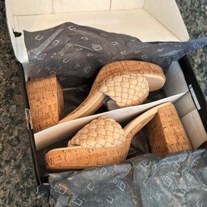 ShuShop Women's Tan Woven Cork Platform Heels NWT 9