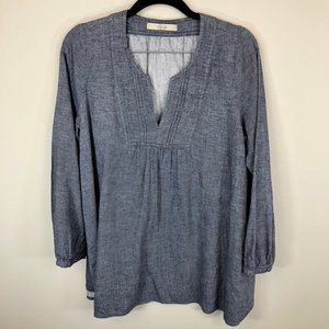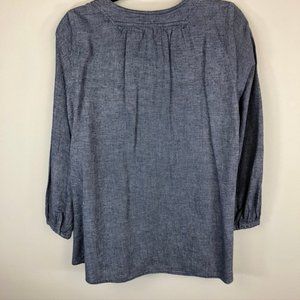 Cult Japanese brand Shuca Global Work soft denim/chambray split neck tunic. Sweet covered button closure at the cuff, 3/4 length sleeve. Gently worn in great condition. Size large.