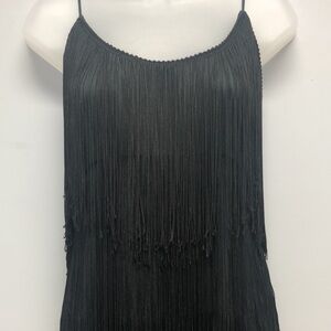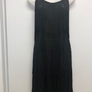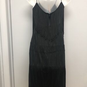 Flapper dress zips up the back, midi style, lined with fringe. Gently worn and in great previously owned condition.