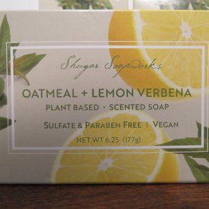 Shugar Soapworks Lemon Verbena and Oatmeal Vegan Soap Bars; 6.25oz - 4 bar bundle; Plant based, paraben and sulfate free. Made in the U.S.A. Animal Cruelty Free