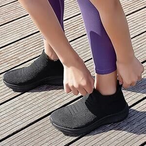 Shulook Womens Size 8.5 Black Mesh Slip On Walking Comfort Lightweight Shoes