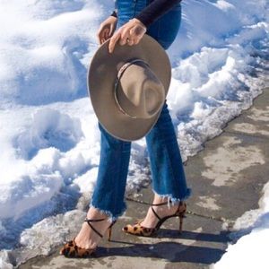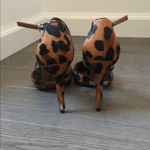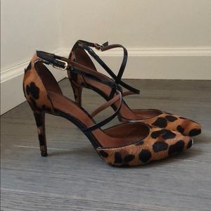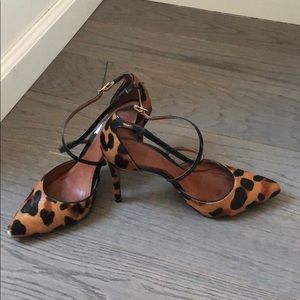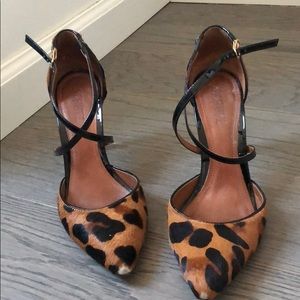 Schutz cheetah print pumps with front strap. Great neutral shoe to wear with just about anything. Very comfortable!