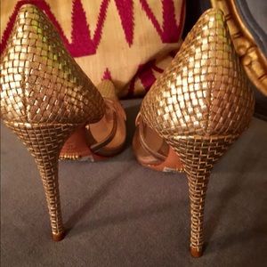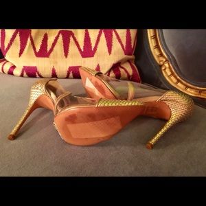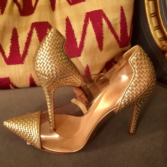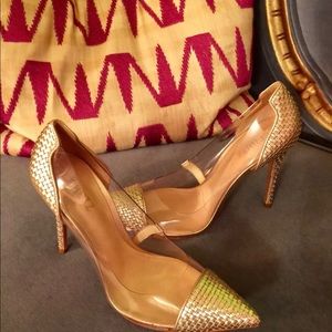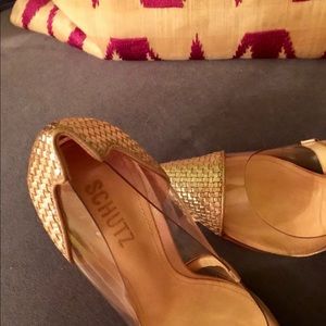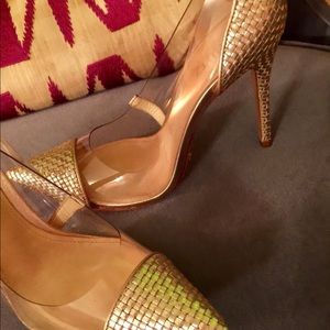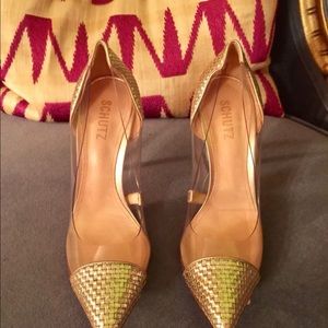 Shultz pointy pumps, clear with gold leather weave. Sassy and classy, good to be worn with a pair of jeans or a dress. New, never worn. Size 37.