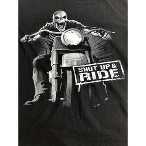 Shut Up and Ride Skeleton Motorcycle Shirt Big XL Tall Black Graphic Tee
