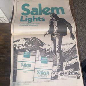There is a small hole on the front picture. Minor folds or creases only. The picture ad on the back is pretty cool too. Cigarette adds. Don’t see them too often.