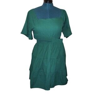 Shy Velvet Women's Summer Dress Square Neck Short Sleeves Crossover Waist Dark Green XL.