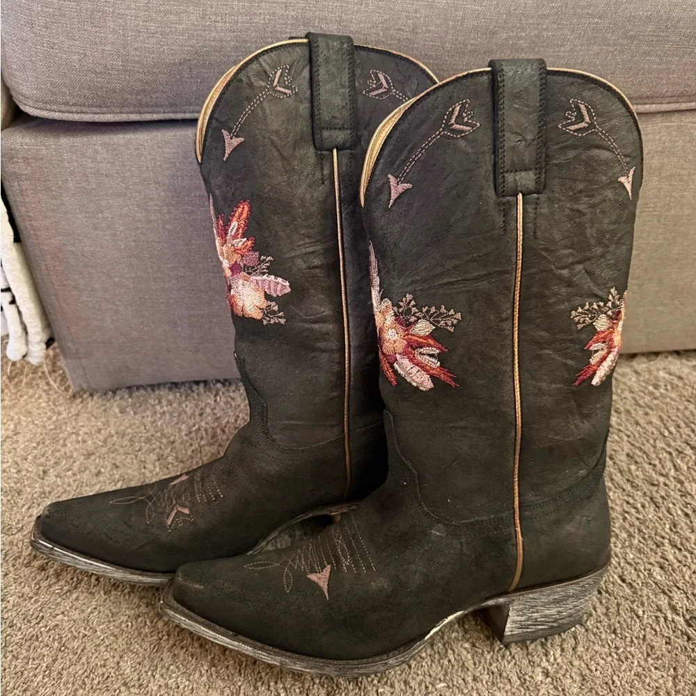 Stylish black boots with floral embroidery. Perfect for a western look. Worn only a handful of times.