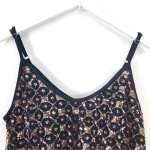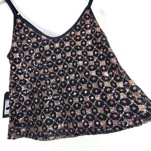 Shyanne Black Golden Bronze Sequin Diamond Pattern Sparkle Tank Top NEW