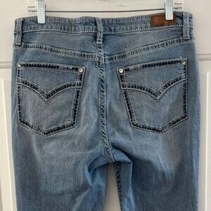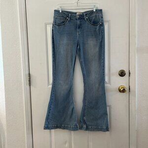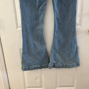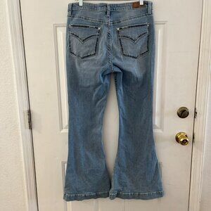 Shyanne Blue LIght-Wash Mid-Rise Signature Embroidery Flare Jeans Sz 33W x 32L
