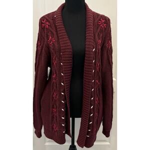 Shyanne Burgundy Shawl Embroidered Cardigan Country Western Size Large NWT