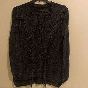 Shyanne Country Sweater Western Size S Fringed V-Neck Gray Long Sleeve Cotton