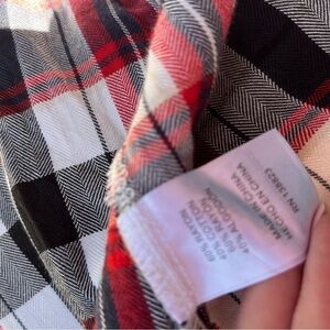This Shyanne sleeveless top in size L features a classic red, black, and white plaid pattern with cow print snap front closures, giving it a country western theme. The garment is made of cotton and is machine washable for easy care. The shirt has a regular fit and is designed for casual occasions, adding a touch of western style to your wardrobe. Pit to pit approximately 22”. Length 25”