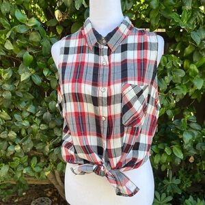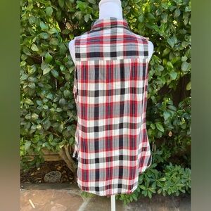 Shyanne Country Western Snap Front Sleeveless Red Black White Plaid Top L