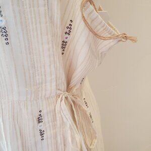 Elegant cream midi dress by Shyanne. Features side tie details. Perfect for casual outings.