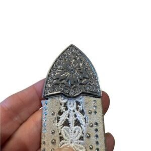Shyanne Ivory Suede White Lace and Turquoise Western Belt (No Buckle) Small