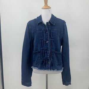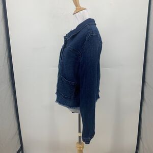 Shyanne Jacket Womens L Large Denim Button Front Pockets Collar Cropped Fray Hem