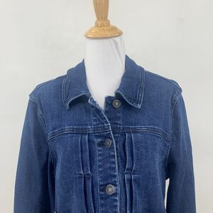 SHYANNE JACKET WOMENS L LARGE DENIM BUTTON FRONT POCKETS COLLAR CROPPED FRAY HEM