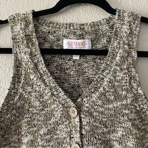 Shyanne Knit Sweater Vest Women’s XS Marbled Green Button Up Front Cropped