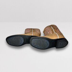 Shyanne Madison Faux Leather Western Boots Size 4 Gold With Pink Embroidery Made