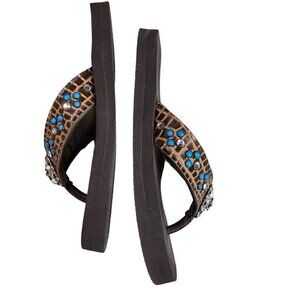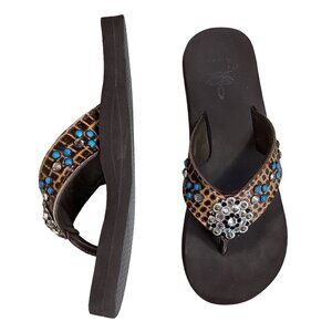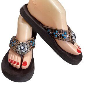 Shyanne Rhinestone Beaded Cowgirl Chunky Flip Flops Brown Turquoise 6.5/7 #299F