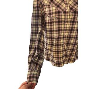Shyanne Unique Accent Purple Western Cowgirl Long Sleeve Button Down Shirt Sz XL