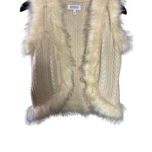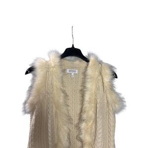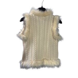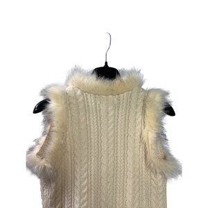 Shyanne Womens Faux Fur Trim Cable Knit Vest Size M Cream