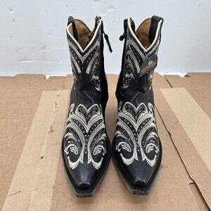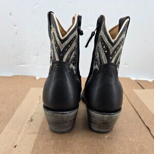 Shyanne Women's Silina Black Leather Western Booties Snip Toe Gold Stud BSWFA22L