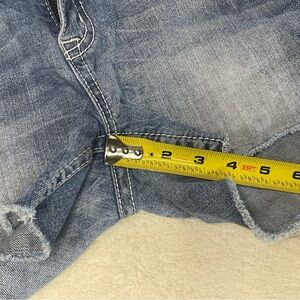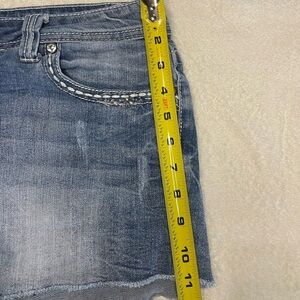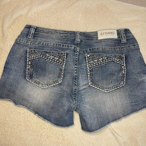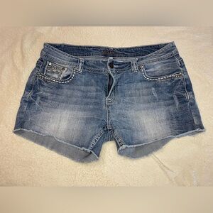 Shyanne Low rise blue denim shorts. Embellished pockets. Great used condition. Size 33 97% cotton 2% polyester 1% spandex