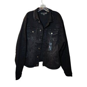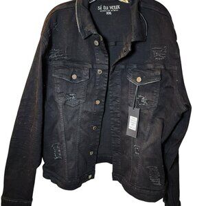 Si Tu Veux Warren Jacket XXL Black Denim Distressed Jean Trucker Style NWT