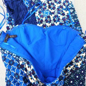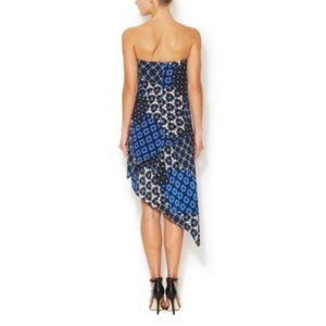 SiLK BCBGMaxAzria Strapless Asymmetrical Dress Enid Fringe Patchwork Boning 4