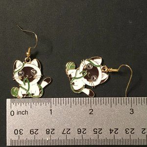 Siamese Cat Playing with Ball of Yarn Gold Tone Pierced Earrings: Dangle/drop earrings with nickle-free gold tone French hooks! Perfect for any time of the year! Nickle-free gold French ear hooks. Comes attractively packaged. Handmade by me. New, never worn.