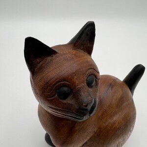 Siamese wood wooden carved cat kitten tail up sitting folk art handmade