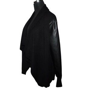 Siani Milano Black Waterfall Front Sweater Size Small NWT Faux Leather Sleeves