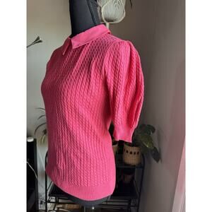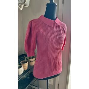 Siani Milano Pink Cord collared sweater with Puff Sleeves Size S Barbie Preppy
