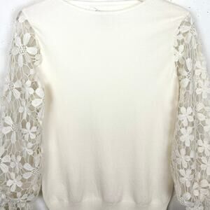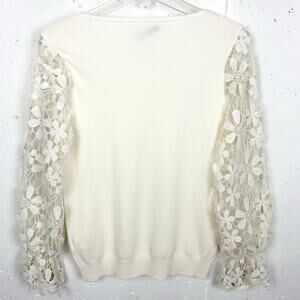 Siani Milano Vanilla Floral Lace Sleeve Sweater Rayon Blend Crewneck Size Medium