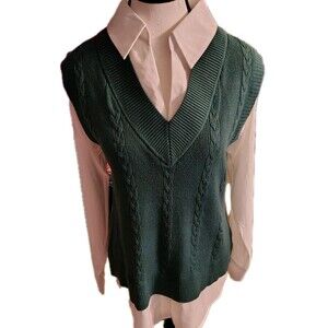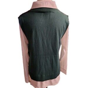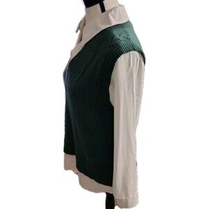 Siani Milano Vest Blouse Size S V Neck Green/ White Long Sleeve