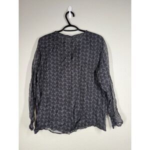 Sibel Saral 100% Silk Blouse Womens L Sheer Lightweight Geometric Quiet Luxury