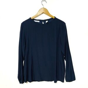 Sibel Saral Round Neck Pocket Front Blouse sz M Navy Blue Long Sleeve Solid