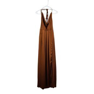 Sibella The Label Women's Satin Cowl Neck Rust Maxi Dress Sz 12