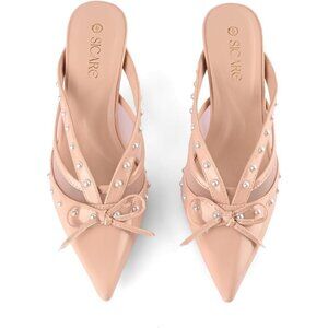 Pointed Toe Heels Pumps: Designed with a premium soft upper, closed pointed toe, and a stylish beaded design with a bow decoration, these pumps add sophistication to any outfit, making them perfect for work or play.