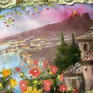 Details: Beautiful Canvas painting by artisan Luigi in Palermo, who with his children, are some of the last remaining practitioners of this art