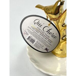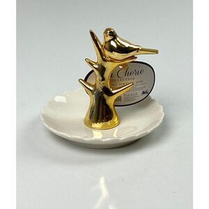 Sicura Qui Cherie Collection Ceramic Bird Jewelry Trinket Dish Small Gold White