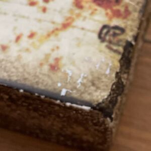 Handcrafted with Sid Dickens' signature artistry, this collectible wall tile features a vintage postmark design and is perfect for display in any home or as part of a larger collection. The art tile, wall plaque measures about 6x8x1.5 inches. The base materials are plaster and proprietary ceramic-like compound for strength and texture. The back is wooden and stamped with the studio's logo. There is some wear to the corners as shown in the photos. You could easily darken the white areas to blend in with the sepia tone background. Otherwise, the piece is in good pre-owned condition.