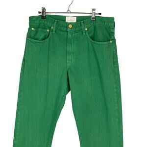 slim straight jeans, men’s green jeans, Kelly green denim, garment-dyed jeans, Cone Mills denim, USA-made jeans, modern straight jeans, tapered straight jeans, premium denim, raw-inspired denim, minimalist jeans, casual green jeans, classic 5-pocket jeans, heritage denim, chain stitch hem jeans, limited edition denim, APC style jeans, Levi’s inspired jeans, statement jeans, old money, colorful, statement, preppy, luxury denim, elevated casual style, statement wardrobe piece, refined everyday wear, modern classic, heritage craftsmanship, timeless design, effortlessly cool, premium quality, style investment, contemporary essential, iconic fit, fashion-forward denim, artisanal detail, authentic American made, collector’s denim, rare color denim, unique style statement, versatile sophistication